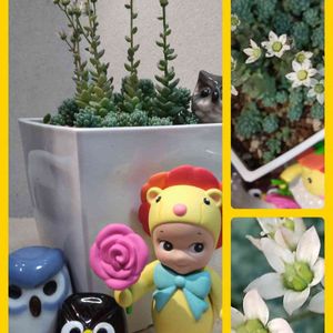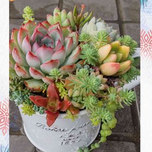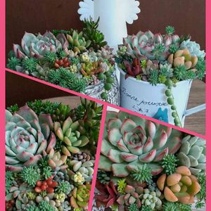 午前中、「多肉植物ちまちま屋さん」に、行って来ました。 お取り置きしていただいた、寄せ植え用のセメント鉢、セダム、くるみさんの本を購入しました。この本は、とってもオススメ、見てるだけで癒されます💕 自宅に戻って、頑張ってやってみましたが、配色とか、土の入れ具合とか、鉢が直径10cmの中に10種類、小さなポット苗ですが、乾燥してるので、ポロポロ、バラバラ😭 やっぱりWSに参加した方が良かったかなぁと後悔しました😅自宅にあった虹の玉だけ追加しました。 何とか、見た目は終了。 うまく育ってくれるといいなぁ💖 終って、タイヨウさんの鉢セット販売があるので、携帯見たとたん、出たぁ🤩🤩 早速今朝の招き猫効果❓ ゲット出来ました‼️ 嘘みたいな、ホントの話です‼️