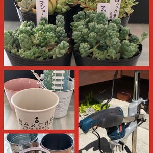 午前中、ちまちま屋さんに行って、先日、まなさんのプレ企画で、当選した、珈琲栽培セットの缶の穴を開けて頂きました。凄い機械で、一瞬で綺麗な穴が開きます‼️ (残念ながら、栽培缶は、ちょっと開け辛かった😅) お取り置きしていただいた、マジョールと、他に斑入り丸葉万年草、葉挿しっ子が入った寄せ植えセット、可愛い鉢を3個買いました。 途中、お客様が2人いらして、いろいろ質問されてましたが、すぐ答えられる、はなずきんさんは、やっぱり凄いですね💕 白のフェンス2つと小さな看板も買いました。 たくさんのセダムや寄せ植えに囲まれて、癒しの空間ですね💕