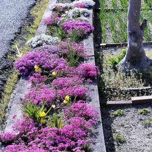 通りすがりに見かけました歩道脇の花壇のシバザクラ☺️ 日差しに照らされ、元気にキレイに咲いていました☺️ (花の名前を間違えていましたら、お教え願います🙇♀️) 昨日撮影投稿しましたのは、夕暮れで日差しが弱かったので、今日は日差しが強い時に撮影しました☺️ 2022/04/05(火)14:27.晴れ スマホ📱で撮影しました☺️