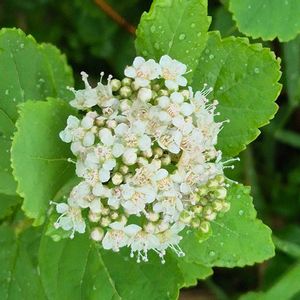 お散歩。 旭岳 📷7/21 小雨に濡れたエゾノマルバシモツケ いつも雪渓が残っている斜面にまだ咲いていました。