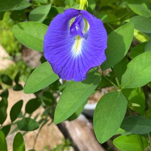 お隣りからバタフライピーのお花を摘んでいただいたので、早速ハーブティーにしました😋 熱湯を注ぐとたちまち綺麗なブルーに💙さらにハチミツを入れると紫色に💜 味はほとんどありませんが、美しい色の変化を楽しめる他、アントシアニンが豊富で、抗酸化作用や眼精疲労改善効果、美容効果があるとされており、認知機能改善にも期待されているそうです✨
