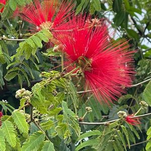 🏷「真っ赤な火曜日」に参加致します🙋♀️ 先程観ました👀 🖐只今お名前を調査し決めました❣️ 🌿中木で綺麗💫に咲いて居ました💅 マメ科 カリアンドラ属 テキサス原産 別名ーベニゴウカン カリアンドラ エリオフィラ