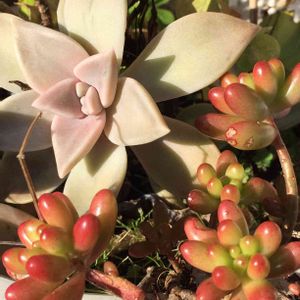 初恋さん親子💗 チビちゃん葉挿しの子ピンクが鮮やかになってる❣ 茎部分の子はピンクの子と そうでない子が…なぜ?? どの子も可愛い〜から許す❣❣💗❀.(*´▽`*)❀.
