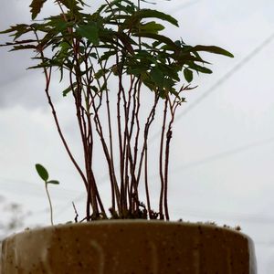 何処の林?なんの木と思うかも 我が家のコキア ちょっとほっそり 朝に夕に水遣りするのですが今年は大きくならない? 何が悪いのかわかりません 青空にマッチするものがない 暑い 仕方がないので庭先のコキアの鉢と取り合わせました❤️🎵