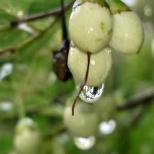 まるで梅雨の空 昨日からの雨にエゴの木の水滴の中の空も鈍色 でも久し振りの雨なので庭の鉢物の水遣りも今朝はお休み ポツポツ降る雨の中三原村の星ヶ丘公園に オミナエシ ミソハギの花が雨に濡れて咲いていますがやはり青空が似合う花 ちょっと遠慮しました 帰り道に照葉野葡萄の花を見に行きました花はまだ蕾 近くのエゴの木の水滴が綺麗だったので水滴の中の空が今月のソラデス 毎月11日は🏷️ソラの日🔎👀🔍