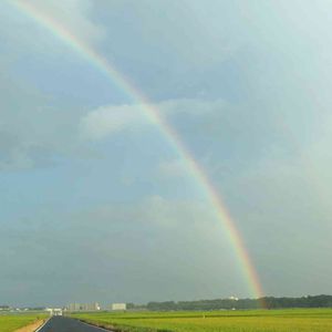 アッ❗️虹だ🌈 私の実家から帰る途中 農道🛣️を走っていると🚗ビックリするくらいハッキリと虹🌈が大きく見えました。 とってもキレイ初めてかも😉 こんなにキレイに見えたのは 加工していませんよ🤗 この後雨☔️が降って来た。