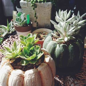雪印種苗園芸センターと、たきの花マルシェで購入した多肉さんを植え替え。 かぼちゃの鉢の色といい感じに合ってて嬉しい