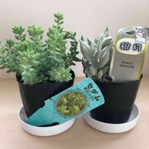 こんにちは😃 初めて迎えました、セダム&銀月🤣 念願の多肉ちゃん、嬉しいです✌️ ぷくぷくした感じが可愛くて選びました🥰 ずっと大切にしたいと思います♪