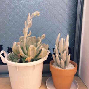 銀月✨✨ 大型って書いてあったけど全然大きくならない子😅 和紙に包まれているみたいな不思議な形が面白くて連れてきて2年位かなぁ〜😓 枯れないけど… この子の成長が少しも感じられない… 何か間違ってる?私がヘタクソ?