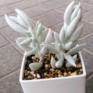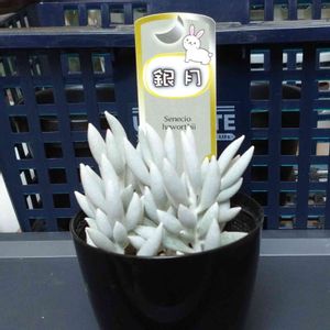 セネシオの銀月です🌙.*·̩͙ 私が多肉植物好きに戻ったキッカケの品種です☺️「葉っぱは緑」と思い込んでた私に植物界の多様性を教えてくれた子でもあります✨ とはいえ、いつまでたっても上手に育てられないのでおこ気味な銀ちゃん😅セネシオなので水好きかと思いきや気まぐれに水を嫌がったりするので、戦々恐々です💦