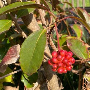おはようございます😄 初冬に相応しい紅い実🔴 今年はつる性植物の成り年みたいで 粒粒のミラーボールが沢山ぶら下がってます🎶 赤くなった実 まだまだ爽やかグリーンの実 少し色づて来た実 それぞれが愉しそうに下がって見えてます😊 五枚目には数多くの実が付いてます 興味のある方良かったら 幾つあるか数えてみて下さいねぇ~😄🎶 ヒント 二桁在ります🟢 葉っぱと同系色なので 見つけにくいかもです🤭 美男葛🔴 真葛🟢🔴