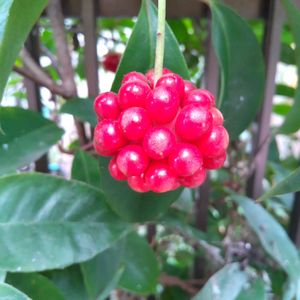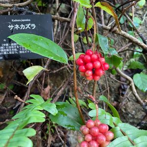 通りすがり垣根の葉陰に赤い実が見えました。 🔍するとサネカズラとかビナンカズラとか出ます。