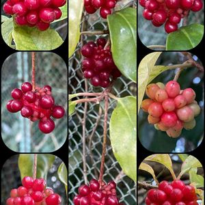 「ビナンカズラ」の実を発見❣️ 家の駐車場の石垣塀に真っ赤な実をつけた蔦を偶然見つけました😅 今年初です💕 野鳥が種を運んだのかな〜😊