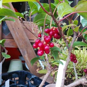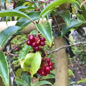 美男葛(ビナンカズラ) マツブサ科、サネカズラ属 小鳥の置き土産です。 実生で育って3年目❗ 初めて、10個ほどの実が着いて赤くなってきました💕🎶 今では私の宝物です<( ̄︶ ̄)> 🏷️つる巻月曜日