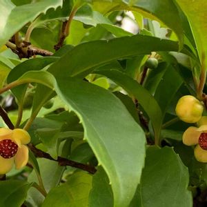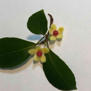 直径2センチ程、小さいけれどタイサンボクの様な厚みのある花と葉。