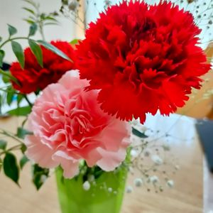 花瓶に入っているカーネーション! 毎日見られるのが好き♥