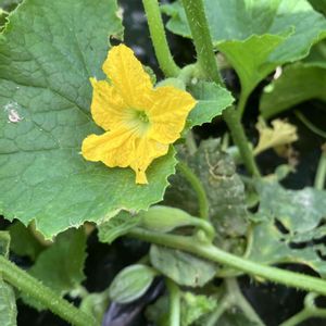 マクワウリ(真桑瓜) 例年、プリンスメロン🍈と友人に頼まれた真桑瓜の二本を植えます。 プリンスメロンは沢山なったけど、真桑瓜はこの頃やっと雌花が咲き始めました♪ 葉を除けると、小さなウリが沢山なってました。 甘く大きくなぁれ❗️😊