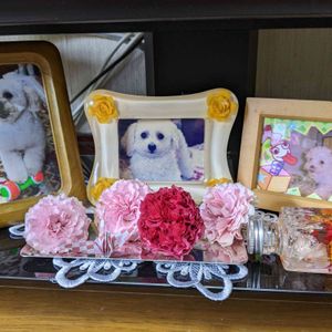 おはよう御座います〜☀ 今日は暖かい冬日和ですね お花達に水やり頑張るね💪 ベルちゃん🌈🐩1周忌に頂いた✨ブロックペイント✨に記念樹としてパキラを!! ベルちゃんの水飲み器に〜 次々と新葉が大きく成長中 ベルちゃんローズのドライフラワーも記念に飾りました…赤い色と白は茶色に変化✨ 玄関に鎮座しているよ〜 いいね\(^o^)/✌️😄💖🎶 ✨極小🐩1.3㌔毎日1時間散歩!…帰りは抱っこ💪😄 散歩友達からのプレゼント🎁〜有り難う御座います🎶 お気持ちに感謝です🙋💕