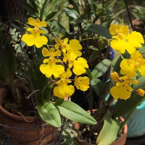 夏の庭 もう カラッカラッ☀️ そろそろお湿り欲しい て思ってたら台風かあ😵💫 小型のオンシ 咲いてます