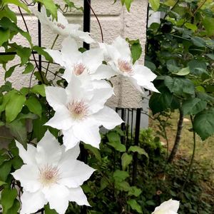 実生の「勝手に生えたちゃんクレマチス」 花が上向きなので、2階から見た図