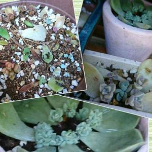 こんばんは☆ こちらキュービックフロスト。 この子も真冬にチョンパ✂️されてsale品として売られていたもの。 やっとモリモリになってきたので、 調子に乗って、解体してみたら、 一つバラバラになってしまいました💦 でも赤ちゃんかわいい♡ もう根っこがあるし、植えるの楽しみです👶