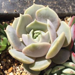 エケベリア レッドこころでございます。picではあまり分かりにくいのですが、少しずつピンク色が出て参りました💕 ローラの赤みがある亜種らしいのですが、今後の変化が楽しみな子でございますね(  ̄▽ ̄)
