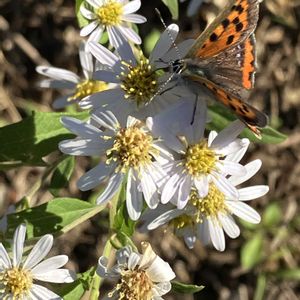 公園の花にちょうちょが🦋 ノコンギク、かな?