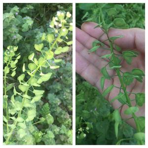 ナズナのような緑の植物と白い細長い植物の名前が知りたいです。よろしくお願いします。