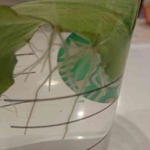 何これ何これ‼️ 息子が学校から貰ってきて、言われたとおりに育ててみたら、葉っぱから根が出て、芽も出てる👀‼️ この葉っぱが何なのか息子も知らない💧