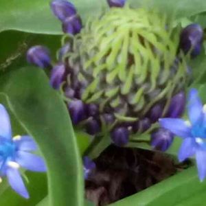 お世話になってる耳鼻咽喉科 いつも素敵な寄せ植えハンギングに釘付けなんです~♡ 教えていただいたブルーファンフラワー、扇子?はたまた孔雀の尾?かわいい~