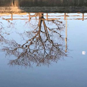👟 早朝ウォーキング 👟 川面に映る「 桜並木 」と 今朝の月 🌙