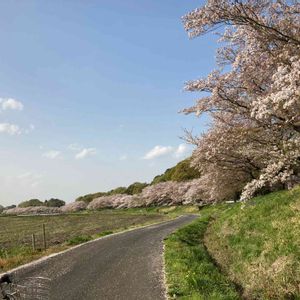 🌸桜並木🌸 さっき撮って来ました📸 家から歩いて1分 すぐそこの風景です🤗 なかなかの田舎に住んどります🌳🌳 約1キロ桜並木が続いています🌸 我が町自慢の風景o(⁎˃ᴗ˂⁎)o