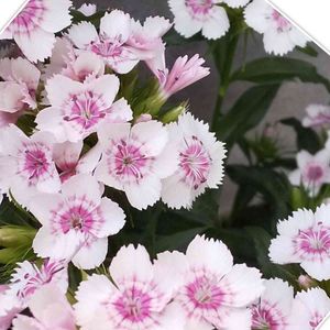 美女ナデシコ 花言葉 純粋な愛情 細やかな想い 中心の白い2輪に目が行くのです🤭💕 細かいこと言って…すみません🤭💦 だって……(⁄ฅ⁄⁄ฅ⁄⁄)💦💦