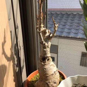 この樹形に一目惚れ、 * 迎え入れてしまった * でも太すぎて合う鉢がないので * しばらく我慢して下さい * バオバブ アダンソニア