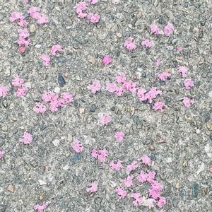 ピンクの金平糖⁉ 遠目で見っけ‼️ 🐜も近づかない…💦 美味しそうな?… 金平糖かと側に行き確認したの… サルスベリの花弁がパラパラ散らばってる‼️… 道端に落ちても可愛らしいお花です💕💕