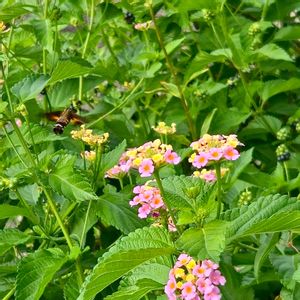 アキレス腱周りの炎症で1週間ぶりに外を歩きました。 リハビリ兼ねて投票へ 暑くなるので、杖ついて、朝一番で、普段の3倍くらいの時間が掛かりました。 帰り道、ランタナにホウジャクが来ました‼️