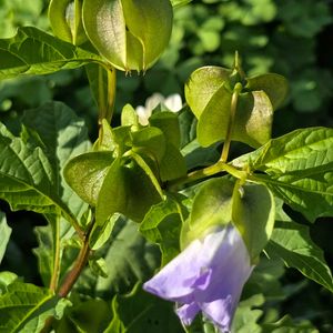 おはようございます🙋♀️ オオセンナリ💠 ナス科 別名 センナリホオズキ 🏷️金曜日の蕾たち 🏷️煌めきの金曜日 🏷️似たもの同士 参加します 蕾の殻の中から花が飛び出して咲いてます😂 蕾はホオズキに似てます……✨雑草かと思いましたが山野草かなぁ…😀