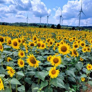 こんにちは🌼 布引高原のひまわり畑です🌼 広大な土地に辺り一面ひまわりの花、そして風車と青空が広がってとても素敵な光景でした🥰 渋滞を待ってて良かった〜💛