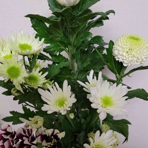 ( *ˊᗜˋ)ノこんにちゎ〜ꕤ*. 🌸 ꧁ 菊 ꧂ 🌸 久しぶりに 大好きなお花屋さんに行ったので 切り花も 🤍💚 特別に地元扱いで 3割引にして頂きました٩(>ω<*)وラッキー 前に教えて頂いたように ハサミは使わず 手で 切って 生けました ❁︎ ❁︎❁︎❁︎ ❁︎ψ❁︎ ) ( (_) 午後も 穏やかに 過ごせますように🕊𓂃 𓈒𓏸◌