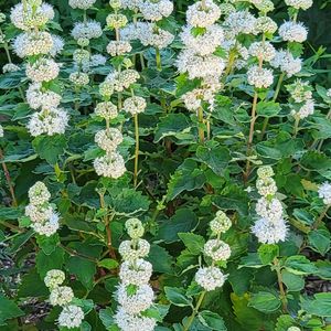 ( *ˊᗜˋ)ノこんにちゎ〜ꕤ* 🌸 ユーパトリウム チョコレート 🌸 🌸 斑入りフジバカマ 🌸 真っ白のお花に銅葉 綺麗です🤍 年々 大株になって 𖤣𖥧𖥣。𖤣𖥧𖥣。 風で 倒されて 下の 斑入りフジバカマさん 負けてしまいそう 😅 午後もガンバです♡o(´∀`o*) ・