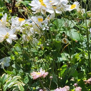 こんばんは✩.*˚ʚ(。• •。)ɞ ♡ 🌸 秋明菊 🌸 今朝のとは違い おチビちゃんで スマートな 品種 🤍💗 でも 🤍は1m近く伸びちゃいました (>< )꜆꜄ 💗は 八重咲きのチャボちゃんです 綺麗な ピンクに ならなくて ( 。í д ì。)残念.... 今日も一日 お疲れ様でした(⁎ᴗ͈ˬᴗ͈⁎)⋆*☆⡱* ・