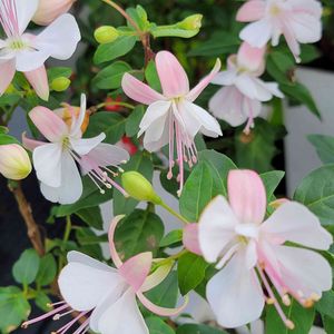 ( *ˊᗜˋ)ノこんにちゎ〜ꕤ*. 🌸 フクシア 🌸 可愛く咲いてくれています 𓂃 𓈒𓏸໒꒱ 別の子は 🐛に 🌿食べられて 酷いことに … 😣 午後もガンバです♡o(´∀`o*) ・
