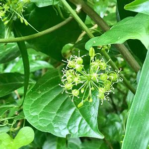 サルトリイバラの雄バナと思います。 まだ、蕾が共存しています(^ ^) 茎のトゲが、画像から確認できませんが、若いから?間違っていたらどなたかご指摘を。 山彦蝶さん、ありがとうございました😊