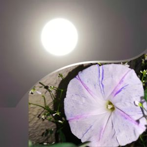【まだ咲いてます(・・;)】 今日はハンターズムーンで満月です。 だからと言うわけではないのですが、アサガオさん、まだ咲いていました。 この前までは、16:30にはお花が閉じて萎んでいましたが、肌寒くなりアサガオさんも夜型生活になったようで、結構遅くまで開いています。 今日は満月とのコラボでどうぞ( ^-^)_旦~