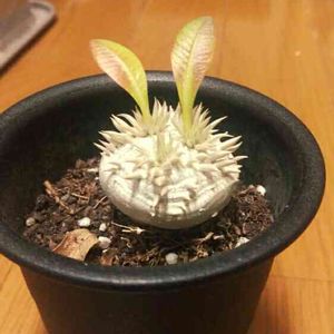 ピヨンと出た葉が可愛いです。 りとまんさんに教えていただいた土を購入したので植え替えてみました。心なしか恵比寿笑いさんが心地良さように見えます。 夏型も少しだけ持ってます。