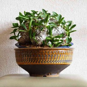 小鹿田の里で見つけた坂本浩二窯の植木鉢 小鹿田は人気が出て現地では品薄状態。良い品は都会のほうが買えそうです。 一子相伝で窯を継ぐようで外からの新しい作り手が増えず需要に追い付いてないのもあるかと思います。 そんな背景のある鉢に恵比寿笑いを植えてみようかと思案中