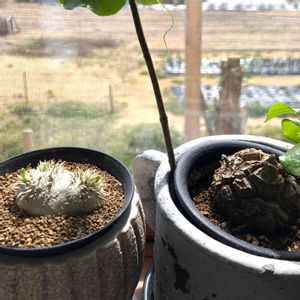 久しぶりのノンビリday🍵😌 なので連投ですが🙇♀️ こちらも、ワシャワシャと葉っぱが出てきてる恵比寿笑いさん🌿 そして、昨年買ったものの植え替えもせずそのままの火星人さんは蔓を伸ばして元気です🎵もう少し涼しくなったら植え替えますけど…😄 実生の恵比寿ちゃんもそれなりに元気だと思います😂