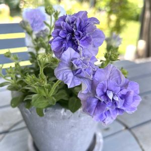 ペチュニア パニエ ライトブルー ずっと欲しかったのですが、この繊細な花びらの八重は私には無理だと手を出せずにいました。 でも、今年は挑戦してみようとお迎えしましたよ❣️ 雨がかかるともうダメ。花びらが透明になってすぐダメになります。早めにカット✂️して綺麗をキープしていく作戦でいきます💪 こんな綺麗なライトブルーの時もあれば、ライトピンク?みたいな色の時もあります。 ライトブルーをモコモコに咲かせたいっ(∩˃ ᵕ ˂∩)