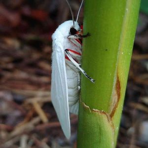 👣……裏道・抜け道……どこまでも まるで 白無垢花嫁か女狐か…… 白い物体の黒いつぶらな瞳の視線に 🤳🤍何? 調べたら_φ(・_・ シロヒトリ🦋