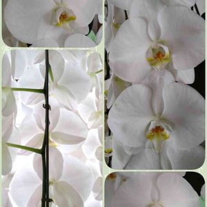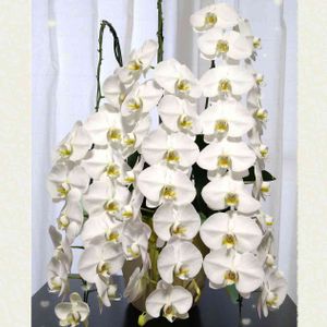 胡蝶蘭🤍🥰🤍 知人からのいただきもの 上の方が……取れちゃったと言われたけど すごい花数 大きな鉢も隠れてしまう花枝 テーブル占領する巨大さに😯